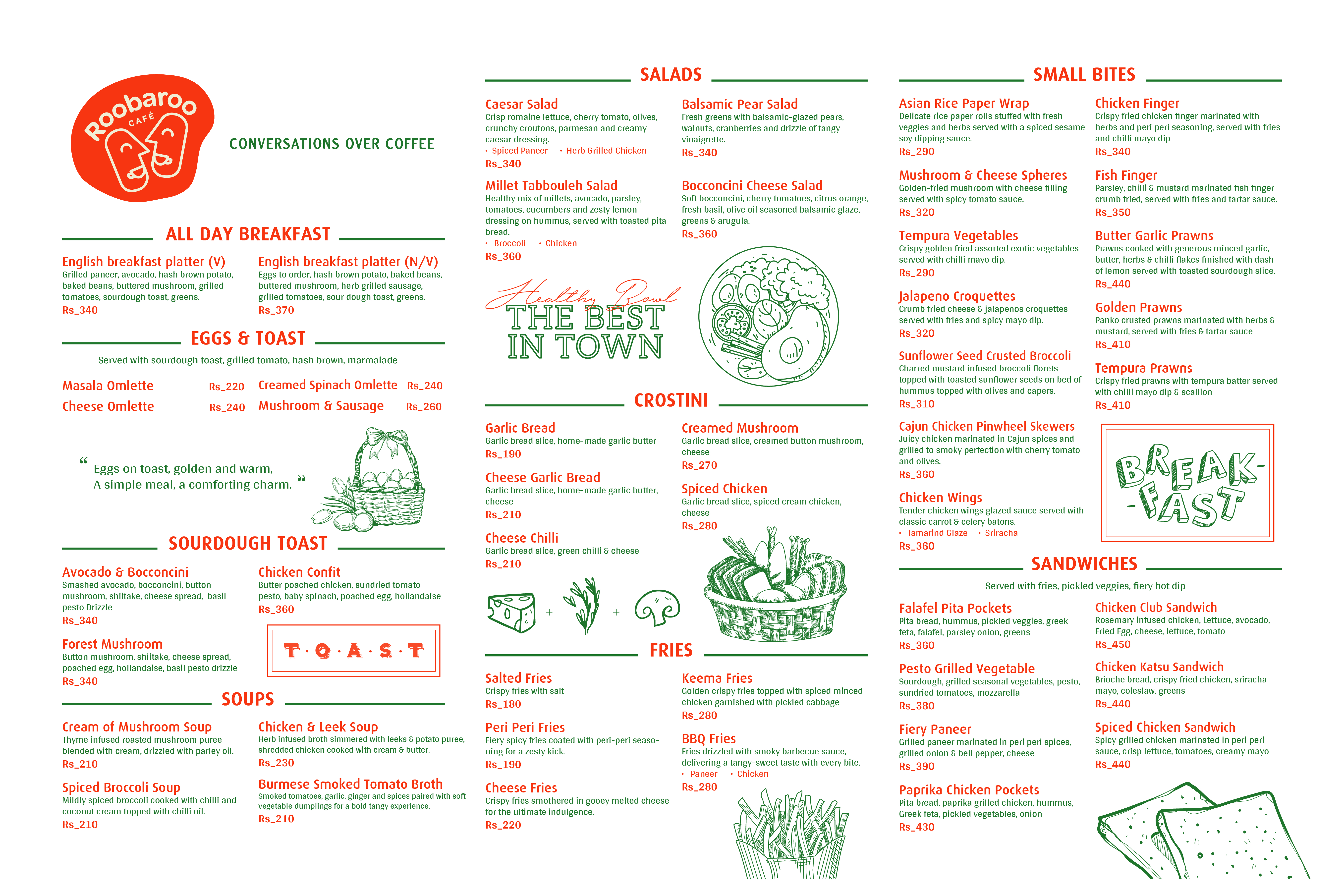 View MenuRoobaroo Café, located in Dilsukhnagar, Hyderabad, is proudly FSSAI licensed (License No: 13625015000075), ensuring top-quality food safety and hygiene. Recognized as the best café in Dilsukhnagar, Hyderabad, we offer a unique fusion of flavors in a cozy and vibrant setting. Whether you're here for a casual coffee, a hearty meal, or a relaxed hangout with friends, Roobaroo Café promises a delightful experience. Our menu features delicious snacks, refreshing beverages, and irresistible desserts, all crafted with care. With friendly service and a welcoming ambiance, Roobaroo Café is your perfect spot to unwind and enjoy great food in Dilsukhnagar.